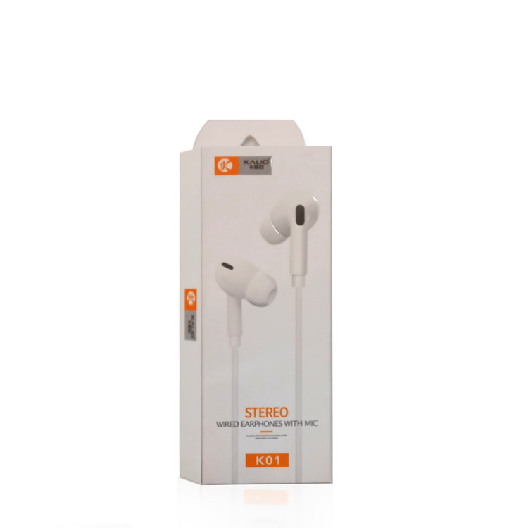 هندزفری KALIO مدل K01 با ساختار استاندارد فوق العاده نرم و سبک که در هنگام استفاده از آسیب به گوش جلوگیری و کابلی با روکش پلاستیکی به همراه پنلی متصل به آن مجهز به یک میکروفون داخلی و یک دکمه جهت پاسخگویی به مکالمات که بوسیله آن میتوانید به تماس های خود را پاسخ و در زمان گوش دادن به موزیک آنرا متوقف یا پخش کنید.
