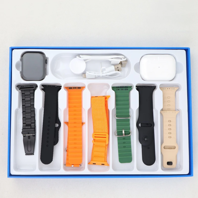 + موارد بیشترساعت هوشمند طرح اپل واچ مدل ws-83 max دارای هفت بند با تنوع با رنگ های مختلف و جذاب است که یکی از بندهای آن فلزی طرح رولکسی میباشد.این ساعت یک ایرپاد هدیه نیز به همراه خود دارد.ساعت WS-83 MAX با سایز ۴۵ میلیمتر، دارای صفحه منوی سریع و روان لمسی با قابلیت نمایش اعلان ها و نوتیفیکیشن ها است.برخی از قابلیت های این ساعت به شرح زیر است: دارای شارژر وایرلس پرسرعت، قابلیت مکالمه و برقراری تماس ها،بند قفل دار، دارای شاتر دوربین گوشی،سازگار با بلوتوث ۵ ،سنسورهای ضربان قلب، فشار خون،اکسیژن خون و پایش خواب، گام شمار، کالری شمار، استاندارد ip68( مقاوم در برابر پاشش آب)، پشتیبانی از تغییر واچ فیس ها،قابلیت کنترل موسیقی، ماشین حساب، تقویم،یادآورها، نمایش وضعیت آب و هوا،باتری با طول عمر بالا. داشتن هفت بند با رنگهای متنوع و زیبا در کنار این قابلیت ها ،این ساعت را به عنوان یک ساعت هوشمند جذاب و کاربردی در میان ساعت های هوشمند میان رده قرارداده است.