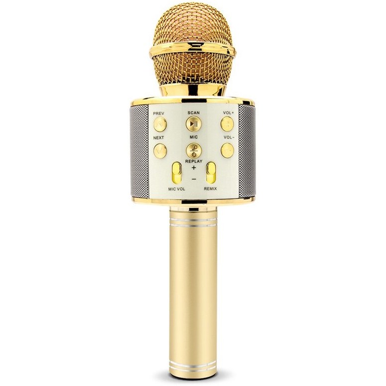 میکروفون اسپیکر مدل WS-858 یک میکروفون همه کاره با قابلیت اتصال بی سیم (بلوتوثی) و باسیم به تلفن های هوشمند اندروید و IOS ، انواع پلیرها و کامپیوتر می باشد. این دستگاه از جنس بهترین مواد ABS و آلومینیوم ساخته شده است . به طور خلاصه می توان امکانات این میکروفون را به این صورت نام برد: بلوتوث نسخه 3, ,ورودی حافظه فلش یا USB ، شیار مخصوص به کارت حافظه، دارای پورت AUX، باتری لیتیومی قابل شارژ ، رادیو، دکمه های تنظیم صدا، ضبط صدا، کارائوکه، 4 حالت تغییر صدا , اسپیکر های قدرتمند و ....