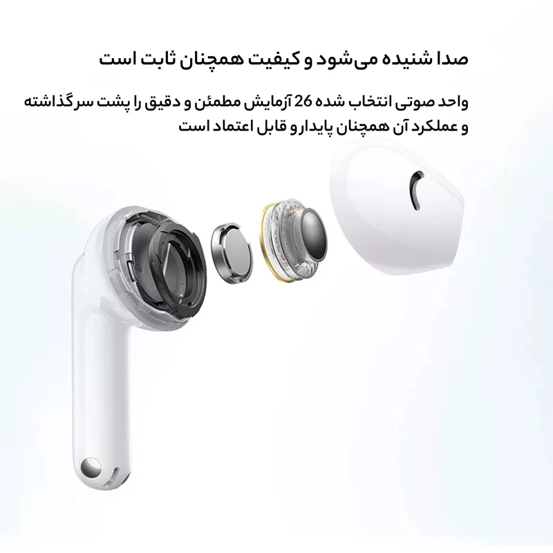از نظر طراحی، وزن سبک و شکل ارگونومیک آن به شما امکان استفاده طولانی مدت از آن را میدهد، بدون اینکه احساس خستگی یا ناراحتی داشته باشید. از طرفی، این هندزفری با سه سایز مختلف سری سیلیکونی عرضه میشود، که این امکان را به کاربر میدهد تا بر اساس اندازه و شکل گوش خود، راحتترین حالت استفاده را انتخاب کند. جالب است بدانید که در این هندزفری، هوآوی 300 هزار کانال گوش انسان را مورد بررسی قرار داده است تا مطمئن شود محصول نهایی با بیشترین سطح راحتی و ارگونومی مطابقت دارد. این دادههای جامع به مهندسین اجازه داد تا طراحیهایی ارائه دهند که نه تنها از نظر زیباییشناسی جذاب هستند، بلکه از نظر عملکردی نیز بهینه سازی شدهاند تا کاربران تجربهای بینظیر از شنیدن موسیقی را داشته باشند. همچنین این هندزفری در دو رنگ سفید سرامیکی و آبی جزیرهای عرضه میشود و هر گوشی تنها 3.8 گرم وزن دارد. در این مدل، هوآوی توجه زیادی به کیفیت صدا داشته است و این هندزفری در تمامی تستهای مختلفی که روی آن انجام شده، توانسته سربلند بیرون بیاید و کیفیت صدای خوبی را ارائه دهد. بر اساس بررسیهای موجود، کیفیت صدای FreeBuds SE2، بسیار خوب ارزیابی شده است. این هندزفری دارای یک تعادل خوب در سه فرکانس پایین، میانی و بالا است و جزئیات صدا را به خوبی بیان میکند. همچنین، موقعیتیابی صوتی و بازسازی صدا نیز در سطح بالایی قرار دارد و با توجه به قیمیتی که دارد، کیفیت صدا را بسیار مناسب میسازد. علاوه بر این، FreeBuds SE2 دارای قابلیت نویز کنسلینگ فعال (ANC) است که به شما امکان میدهد در سطح صدای پایینتری موسیقی گوش کنید و از خستگی گوشهای خود جلوگیری کنید. بخاطر اینکه نیازی به بلند کردن صدا برای غلبه بر نویز پس زمینه نیست. این ویژگی برای سفرهای هوایی و مسافرتهای مختلف بسیار ایدهآل است. در مجموع، تعهد هوآوی به ارائه کیفیت صدای برتر در FreeBuds SE2، واضح است. گوشیهای هندزفری 26 آزمایش قابلیت اطمینان را با موفقیت پشت سر گذاشتهاند. از این میان، 6 آزمایش به طور خاص بر حفظ تجربه شنیداری استثنایی در سناریوها مختلف تمرکز دارند. این تعهد هوآوی به تجربه صوتی عالی کاربران به این معنی است که شما میتوانید خود را در موسیقی مورد علاقه خود غرق کنید و حسی بسیار بینظیر از صدا را تجربه کنید.