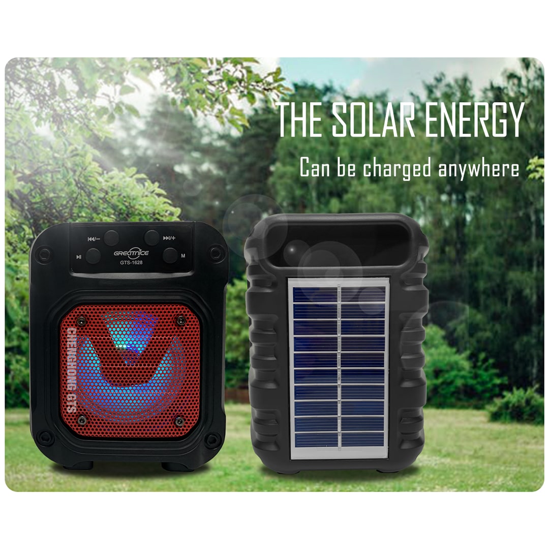 اسپیکر شارژی و خورشیدی بلوتوثی مدل GTS-1628 با طراحی زیبا و بدنه محکم و سبک، دارای صدای عالی و شفاف بوده و مجهز به پنل خورشیدی است.