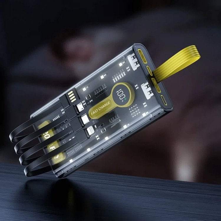 - مجهز به ۴ کابل شارژ متصل برای سهولت استفاده و جلوگیری از گم شدن کابل.