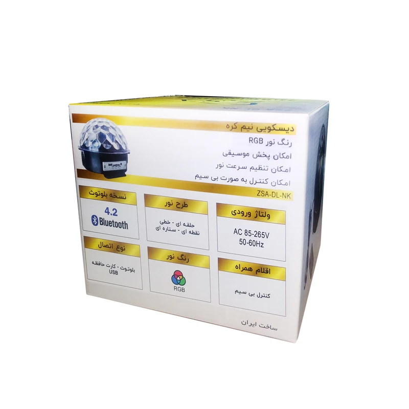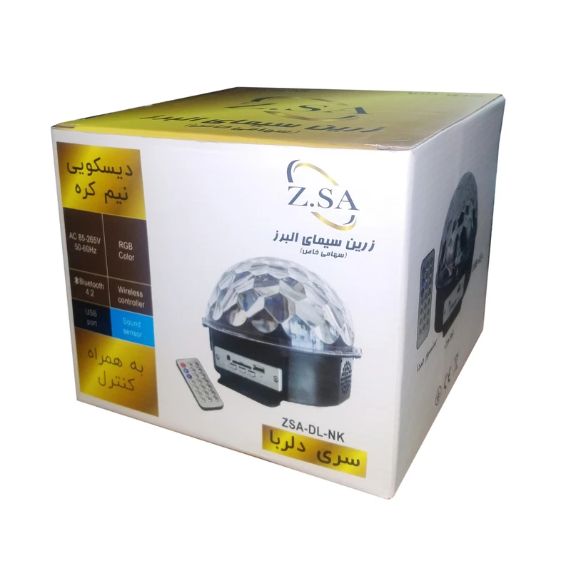 چراغ رقص نور بلوتوثی موزیکال زرین سیمای البرز مدل usb که به عنوان اسپیکر هم استفاده میشود با نورافشانی فوق العاده زیبا به مجالس زیبایی دو چندان می دهد . این چراغ که شبیه به یک توپ شیشه ای کریستالی است هماهنگ با آهنگ در حال پخش از دستگاه نور افشانی می کند . رقص نور موزیکال زرین سیمای البرز یک رقص نور ریموت دار با یک ورودی USB و بلوتوث می باشد که می تواند موسیقی دلخواه شما را از یک حافظه خارجی بازخوانی نموده و از طریق بلندگوهای خود پخش نماید.ریموت کنترل این محصول برای تنظیم موسیقی طراحی گردیده تا بتوانید به راحتی ، موسیقی قبلی و بعدی را انتخاب کنید صدای بلندگوها را زیاد کنید و یا پخش موسیقی را متوقف کنید. لازم به توضیح است این اسپیکر دارای دیافراگم هوشمند تشخیص صدا می باشد و با توجه به ضرب آهنگ مدل و رنگ رقص نورها تغییر پیدا میکند.