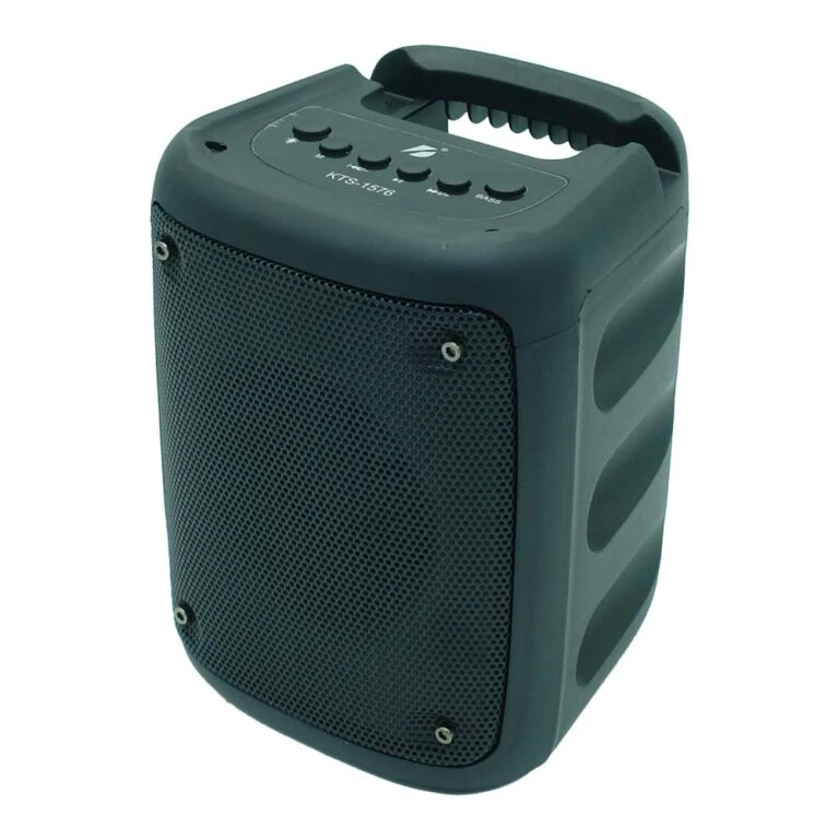 اسپیکر KTS 1576 گزینهای عالی برای افرادی است که میخواهند یک اسپیکر قابل حمل با اثر رقص نور داشته باشند. اندازهی کوچک این اسپیکر باعث میشود تا آن را آسان بردارید و از پشتیبانی از منابع مختلفی از جمله بلوتوث، کارتTF ، USB و رادیو FM برای پخش موسیقی استفاده کنید. همانطور که پیشتر اشاره شد، این اسپیکر دارای ظرفیت باتری 1500mAh است که اگر صدا تا 75 درصد بالا باشد تا یک ساعت شارژ نگه میدارد. ویژگی کاهش نویز فعال به کاهش نویز پسزمینه کمک میکند و صدایی روان و رسا را به همراه میآورد. این اسپیکر کوچک و جمعوجور است که حمل و استفاده از آن را در حین حرکت آسان میکند. این اسپیکر یک وسیله سبک و قابل حمل است که میتواند برای مهمانیها، فعالیتهای خارج از منزل و رویدادهای دیگر استفاده شود.