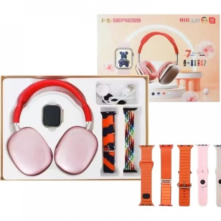 پک ساعت هوشمند سری ۱۰ مدل P9 به همراه هدفون بلوتوثی و 7 بند